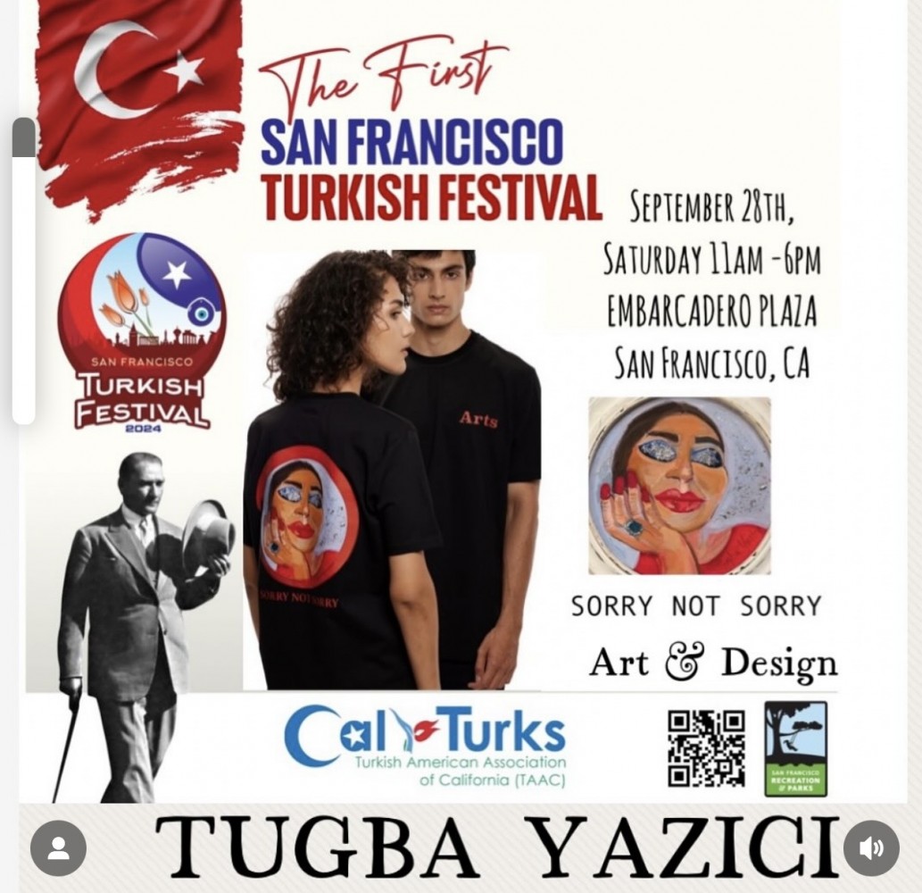 Tugba Yazıcı, San Francisco Türk Festivali’ne katılarak hem resimlerini hem de “Taşınabilir Sanat” anlayışıyla tasarladığı yeni T-shirt koleksiyonunu sanatseverlerle buluşturdu. “Sorry, Not Sorry”, “Ben kendi hayatımın CEO’suyum”, “I Don’t Care” gibi güçlü mottolardan oluşan koleksiyon ziyaretçilerden büyük ilgi gördü.