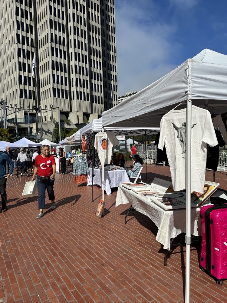 Tugba YAZICI participated in the San Francisco Turkish Festival, showcasing both her artwork and her new T-shirt collection designed with the “Portable Art” concept. Featuring bold mottos such as “Sorry, Not Sorry,” “I’m the CEO of My Own Life,” and “I Don’t Care,” the collection drew significant attention from festival visitors.